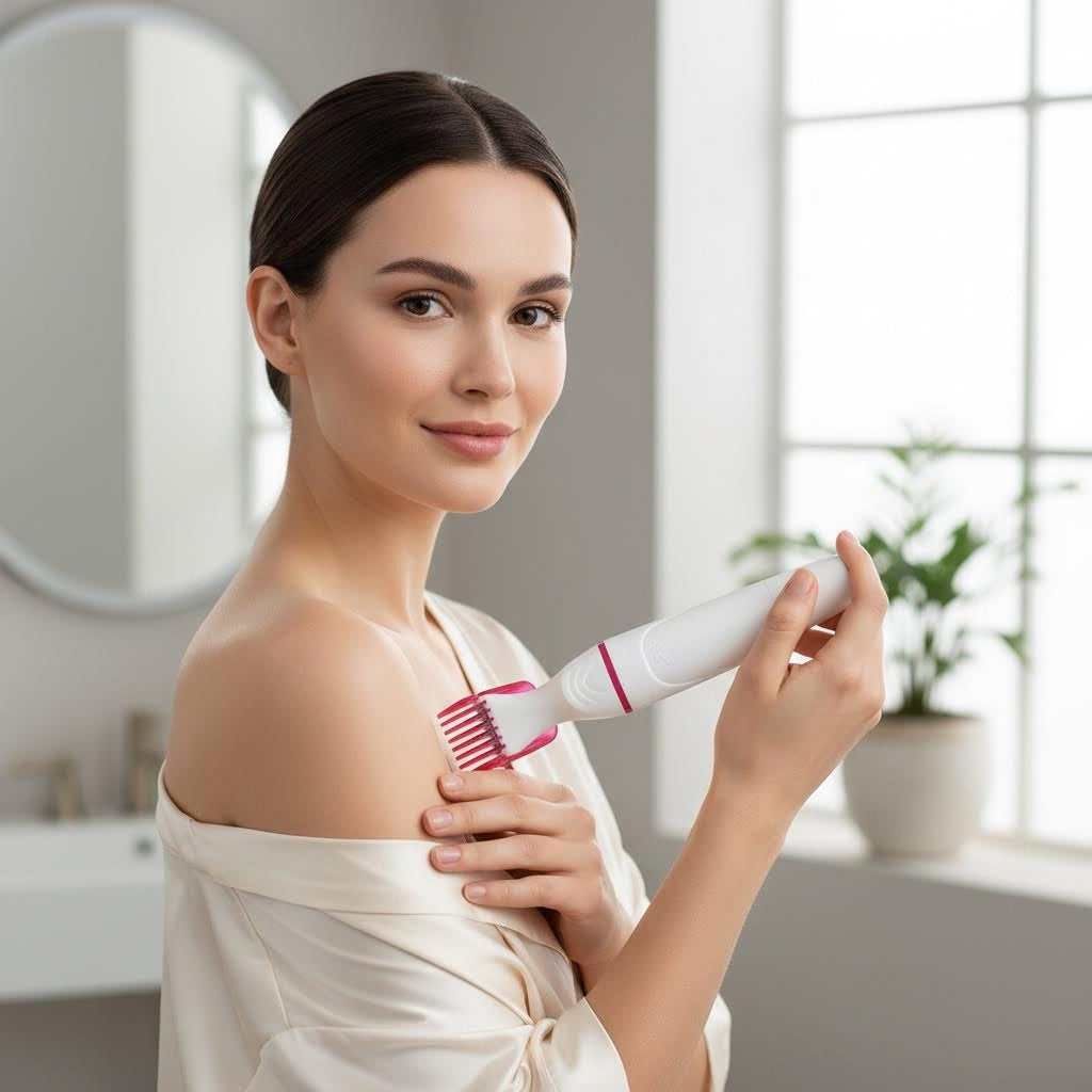 O Depilador Elétrico Essencial ELARA foi criado para mulheres que desejam uma depilação prática, confortável e possível no dia a dia — sem dor, sem bagunça e sem depender de métodos agressivos.